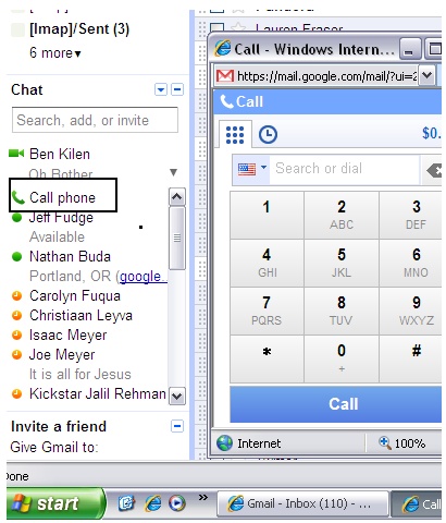 Ok, I have been very slow to adopting Google Voice. I have not found a real use for it but it is slowly evolving and becoming useful to me. I opened my Google page this afternoon and it said “try Google Calling” so I did. It seems to be similar to Skype (voip) and works within the US and Canada free. I am wondering if it work outside the US to call a US number without any charges. I talked with Moriah over GV and she thought it was pretty neat hearing herself on daddy’s computer.